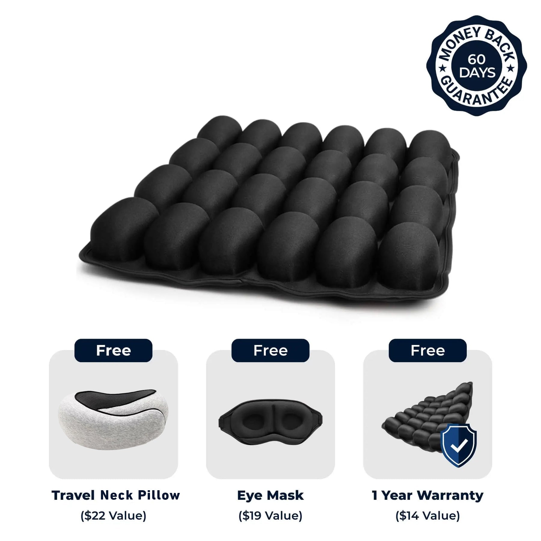 The Halvira inflatable cushion features 31 Air Cells that contours and hugs your bottom, redistributing pressure for unparalleled comfort and support. Even on the most thinly padded, uncomfortable seats, sitting on this cushion will feel like you're on a bed of soft, plush clouds, allowing you to sit comfortably for hours without back, bottom, or tailbone pain.