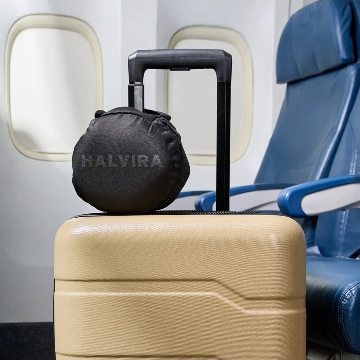 Packing up the Halvira travel cushion is super easy and takes seconds. Simply unplug the air valve, deflate the cushion, fold it up, and put it back into the small carry bag. You can easily fit in inside or attach it to your carry-on luggage including bags, totes, backpacks and more!